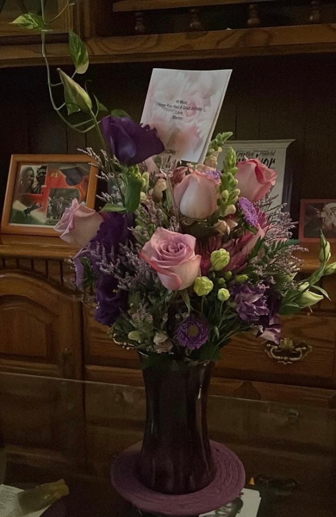It was nice to receive birthday wishes from my kids and a beautiful bouquet of purple themed flowers as well.
