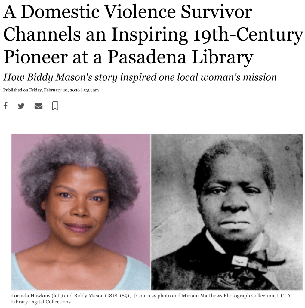 What a blessing to be able to present Biddy Mason during Black History Month: Building Bridges Art Exchange and Frieze Art Show. At Building Bridges Art Exchange, it would be my first time teaming up with my Western Arts Alliance (WAA) buddy and visual artist, Chelle Barbour.